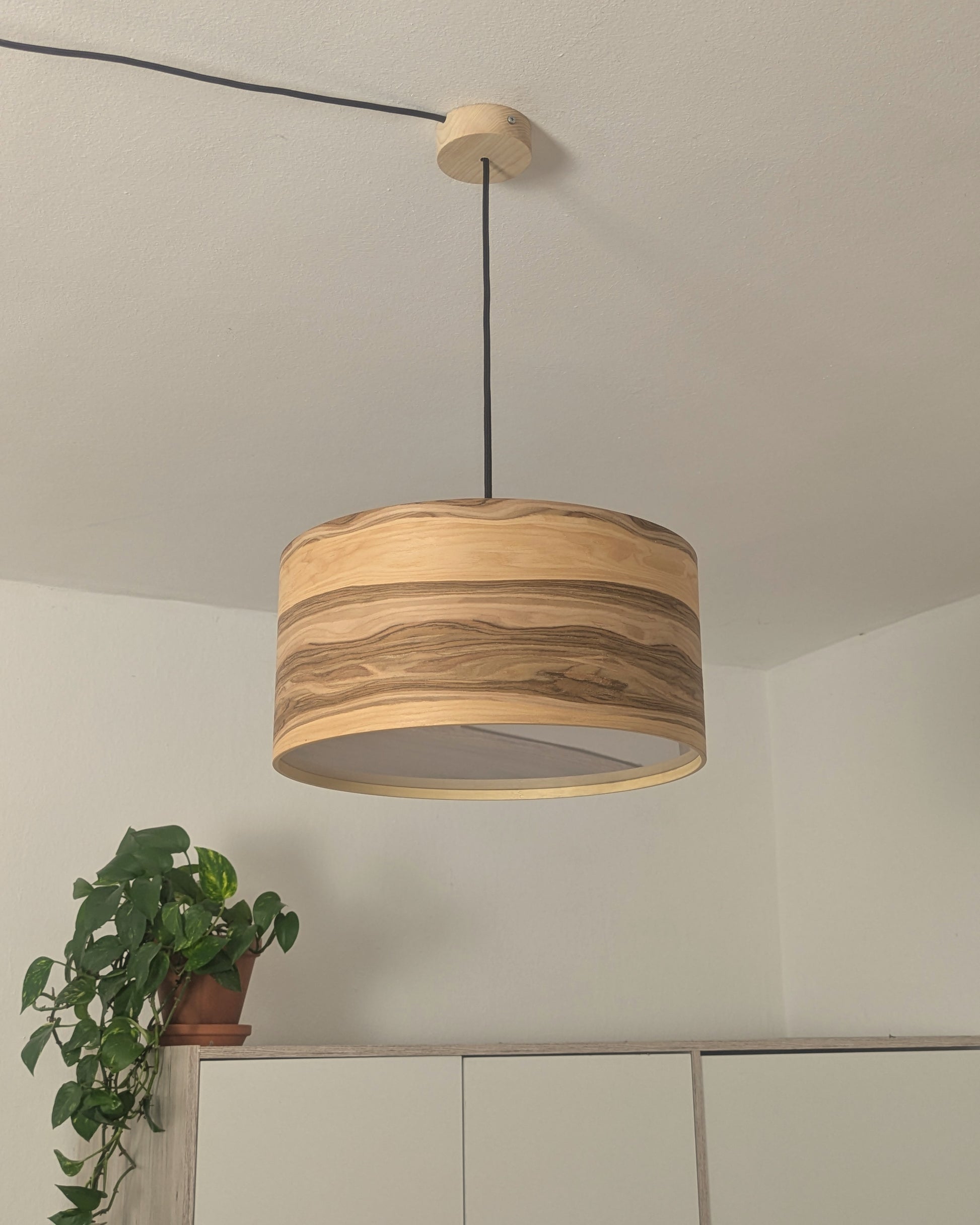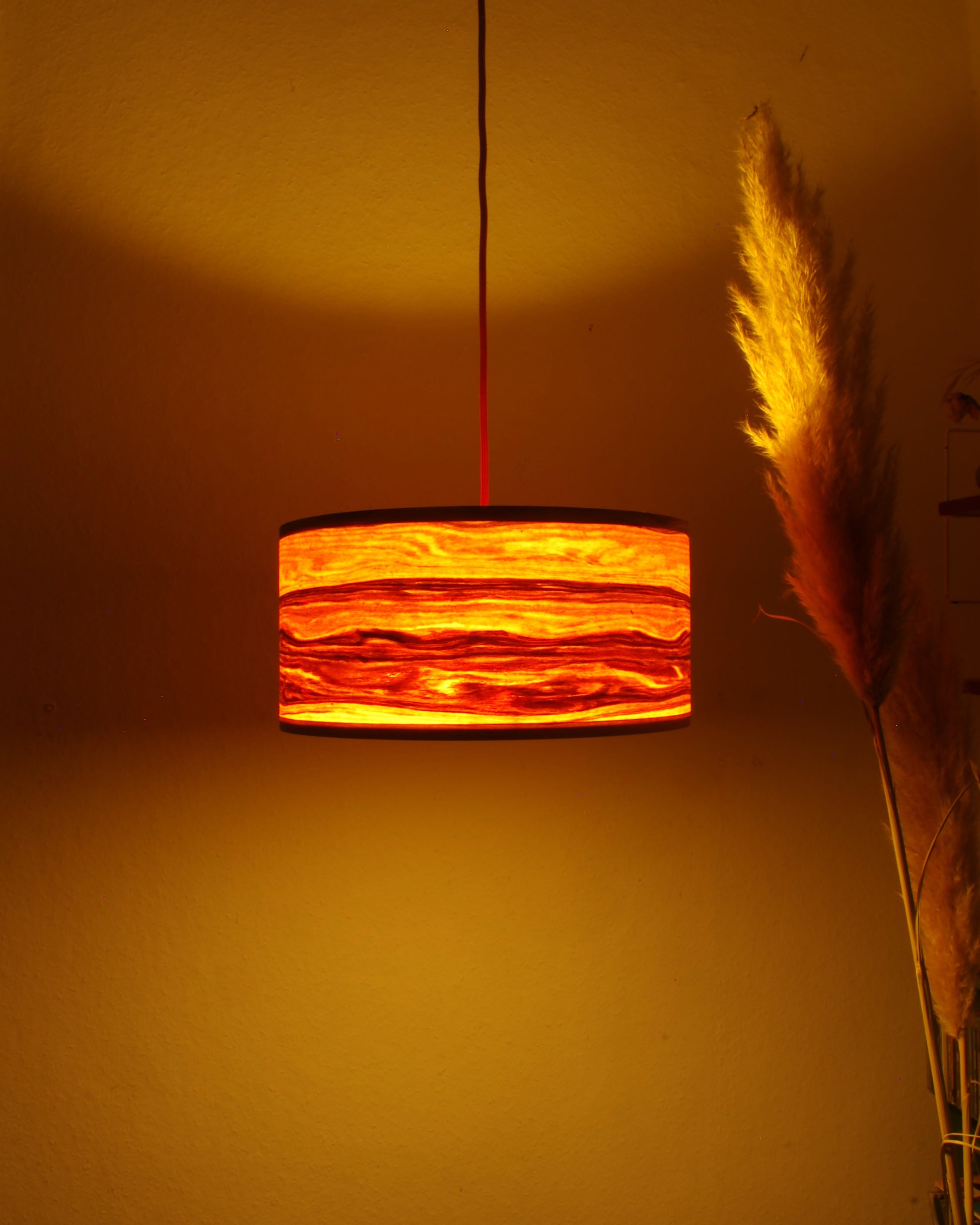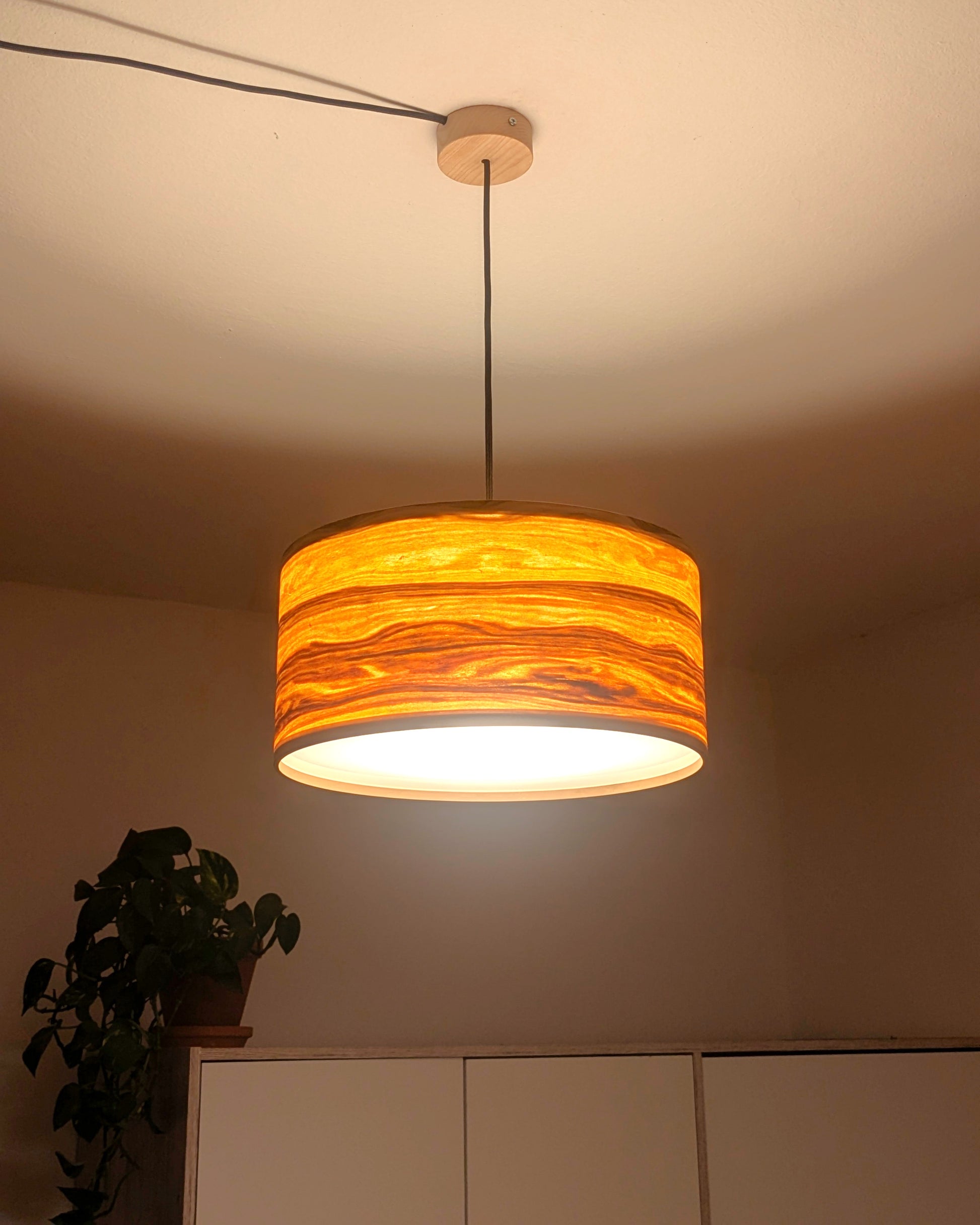 Einzigartigkeit: Natürlich lichtdurchlässiges Furnier – jede Maserung anders, jede Leuchte ein echtes Unikat